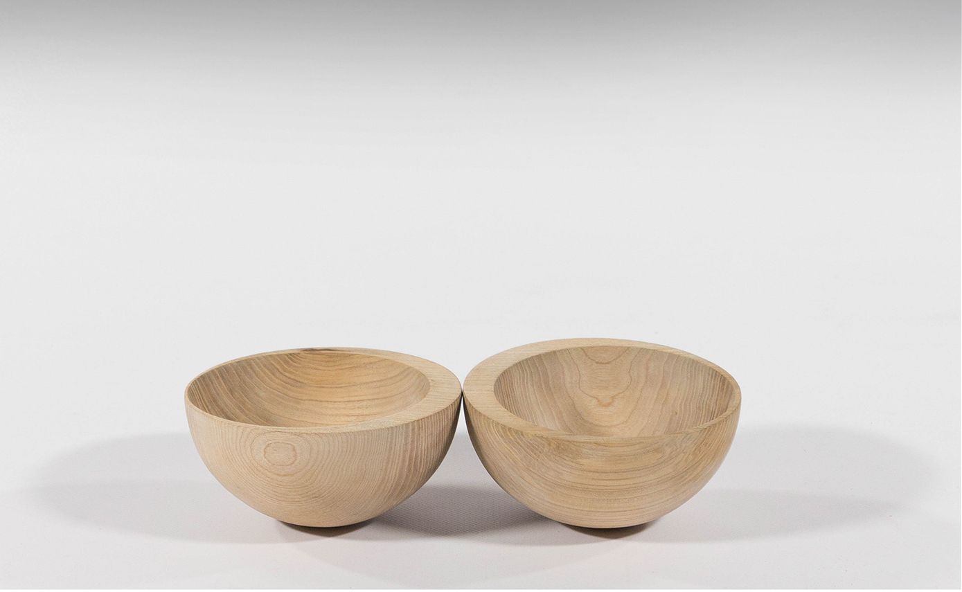 A l’origine de ce projet, la conquête d’un nouveau monde. Que rajouter dans ma valise avant de partir ? Il s’agit ici de penser à la symbolique et à ce qu’il me manque lors de mes voyages. Ces deux bols en bois de frêne racontent ici une histoire ; une histoire d’équilibre, de stabilisation, mais aussi de partage et de rencontres autour d’un repas.
