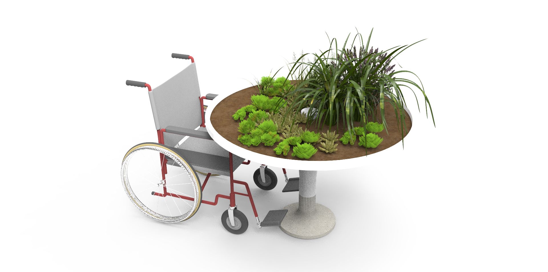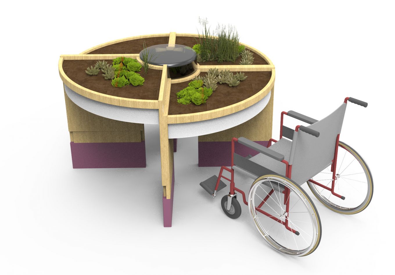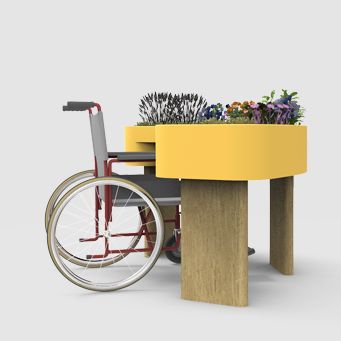 Suivant l'idée d'un jardin de soin et thérapeutique, le projet d'une gamme de jardinières adaptées à tout type de patients visitant l'Hôpital Calvé à Berck-Sur-Mer a germé en même temps que les concepts d'aménagement des jardins